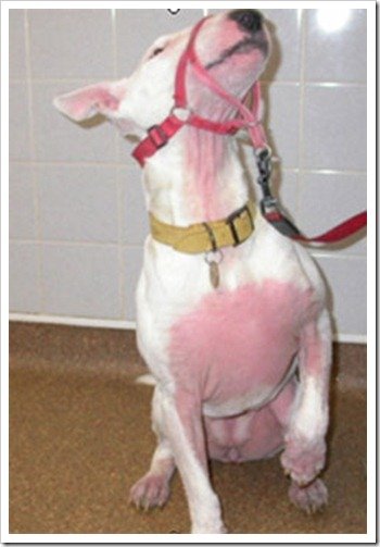 Бедный Викингуша,еще и покраснел от брома....Аня фото бультерьера просто ужасающее.....Тань может фото Викинга ОА послать...