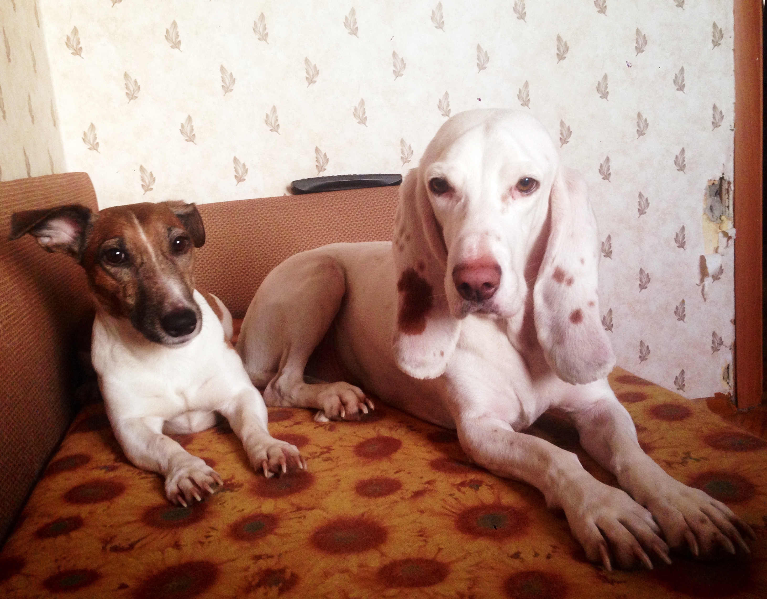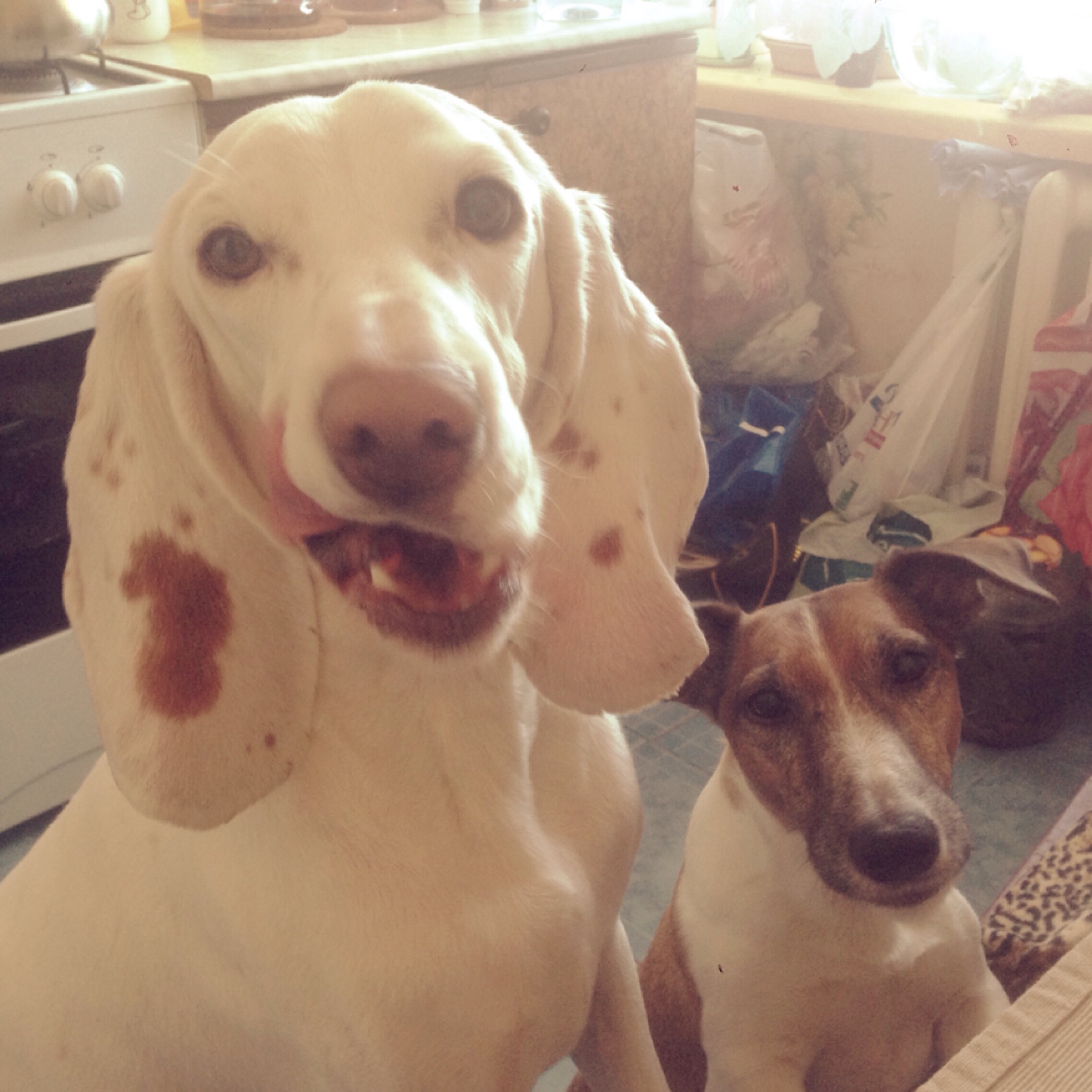 А вот так мы едим. Всегда. Одна Лаки - приличная собака. Приходит на кухню только когда зовут