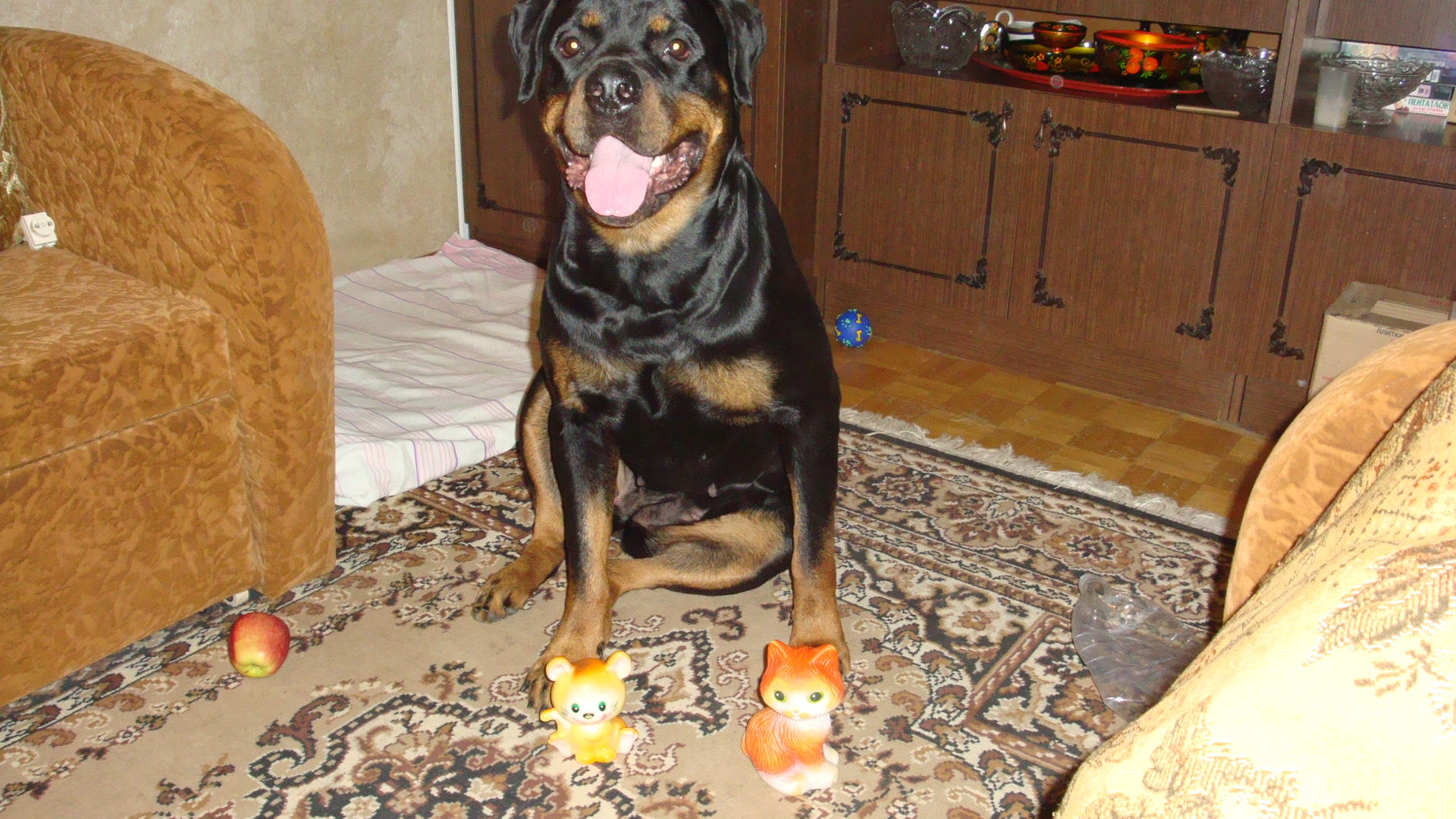 Катя Найда у нас рослая высотой 63-65см ,длина 72-75см,вес сейчас 42-44кг,грудь 95-100см.