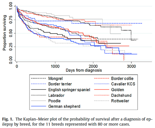 Только несколько исследований дали данные о смертности в популяциях собак, включая чистопородных и помесных, с идиопатической и симптоматической эпилепсией. Целью этого исследования было изучить выживание и прогноз в такой популяции и исследовать конкретные факторы риска, возможно, влияющие на время выживания.