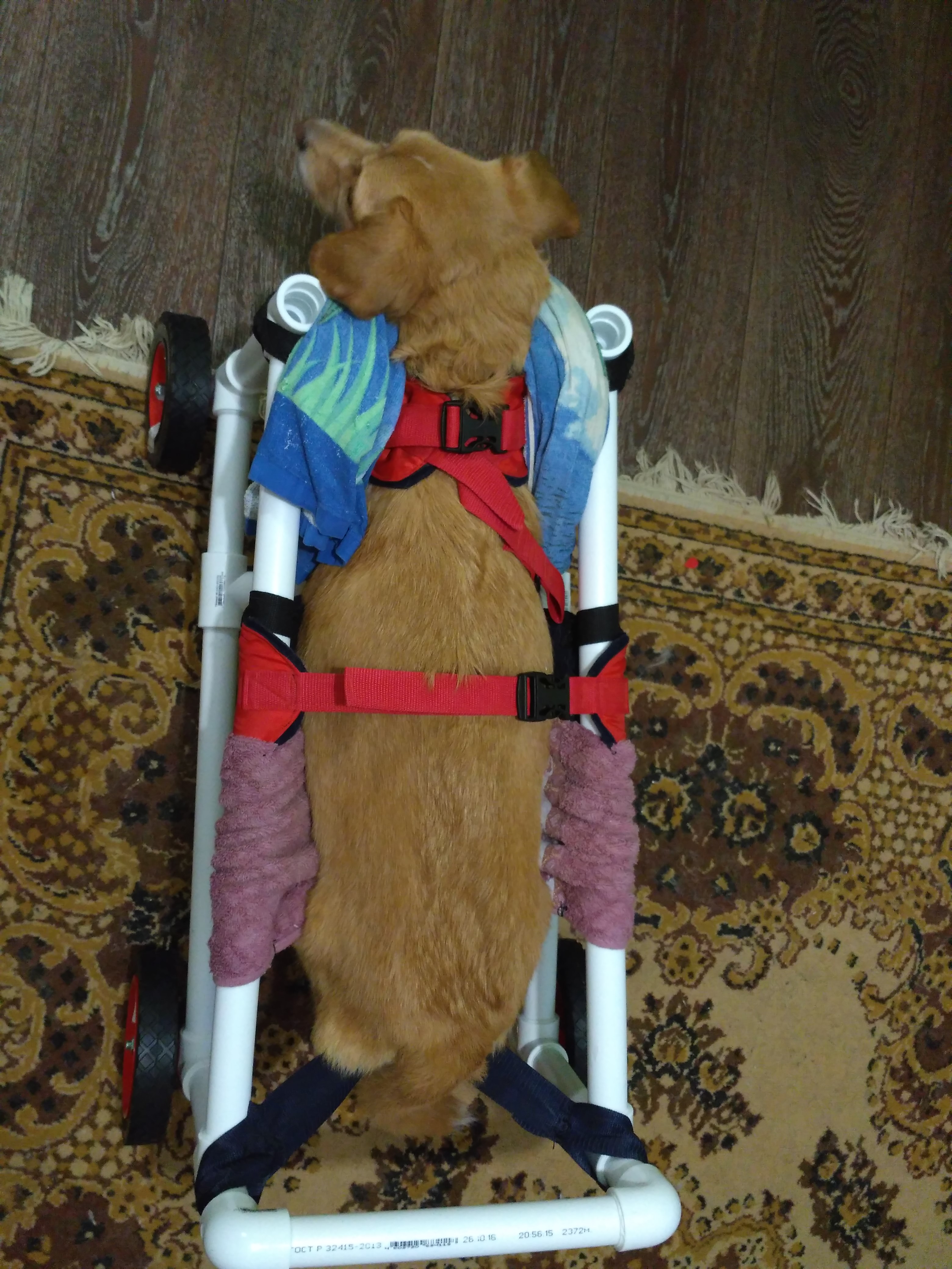 Мы сейчас задними лапами с поддержкой походили!!!! А еще посикала и покакала на улице!!))) Видео как ходили нет, руки были заняты ей))