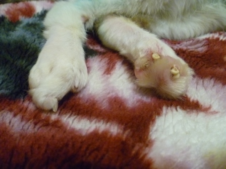 И вот как выглядят наши лапки сейчас.Скоро на повторную операцию и косточки,которые торчат, спрячут.