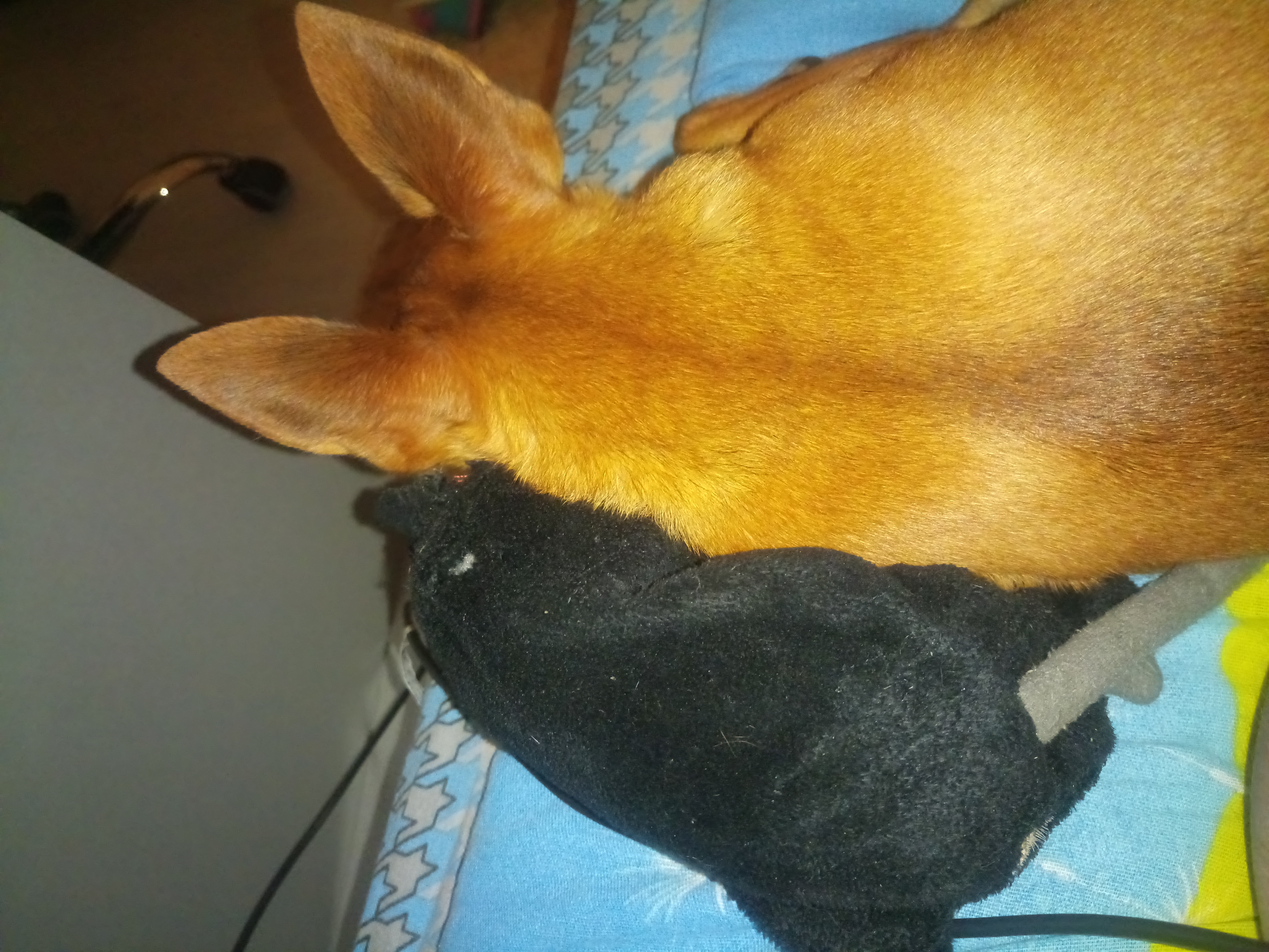 Ага, игрушка из Икеи. Старая, шитая перешитая. Из неё он в прошлый раз и доставал синтепон))