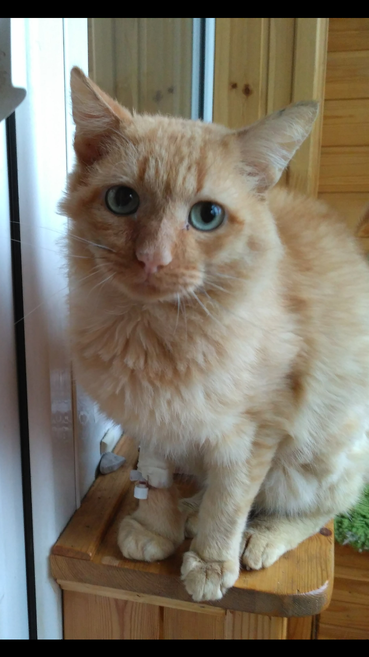 Всем привет, а у нас вот такой умный котик на лечении. Взяла из приюта капельницы ставить. ХПН похоже... Такой умный и добродушный! И рыжий...