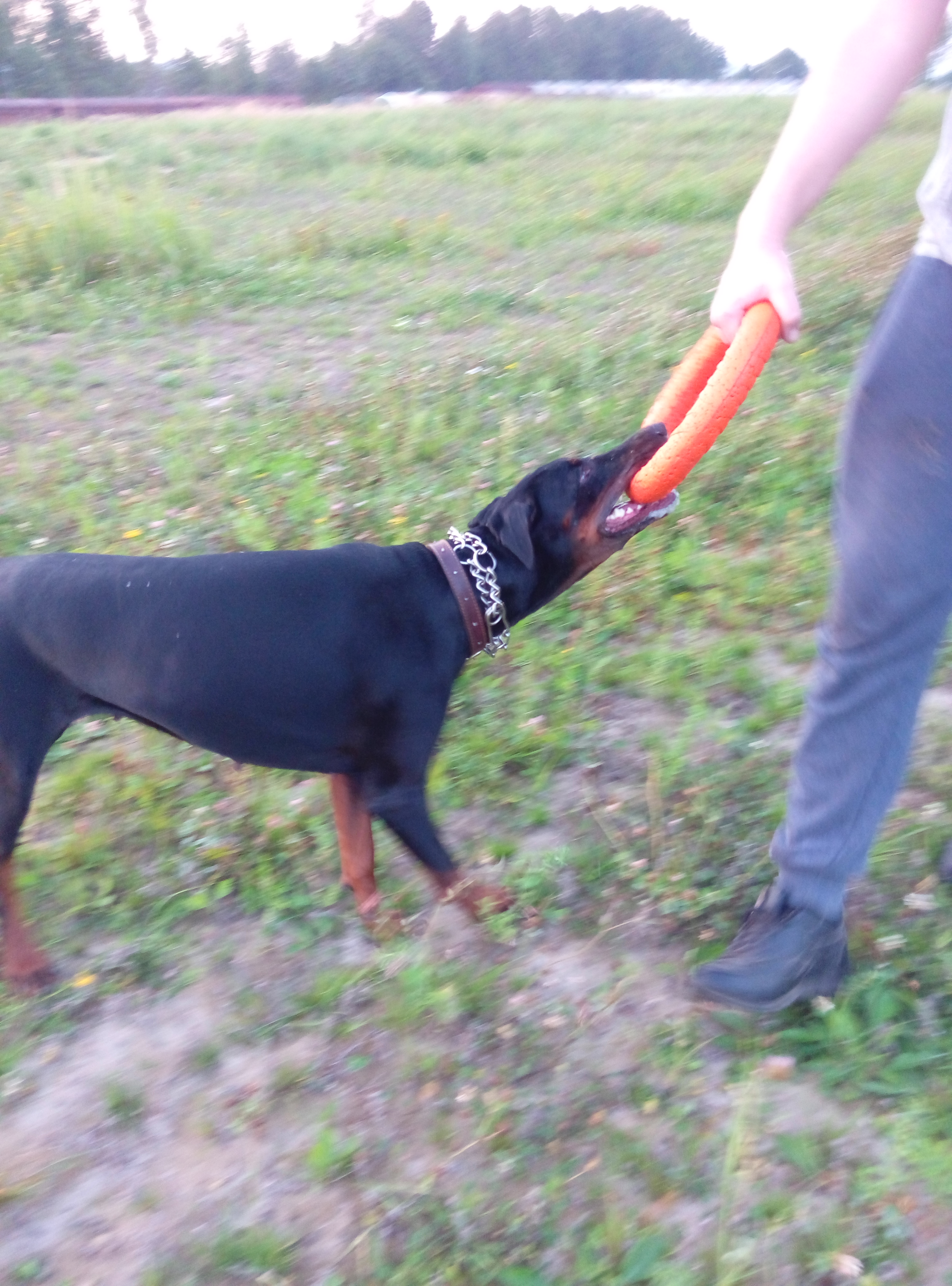 У нас собака - доберман Эльза. 3 года, не стерилизована. Прививки, глистогонка регулярно. Кормим натуралкой. Проблем со здоровьем никогда не было. Эльза очень эмоцианальная, сгусток энергии просто. Обожает играть, может это делать бесконечно.