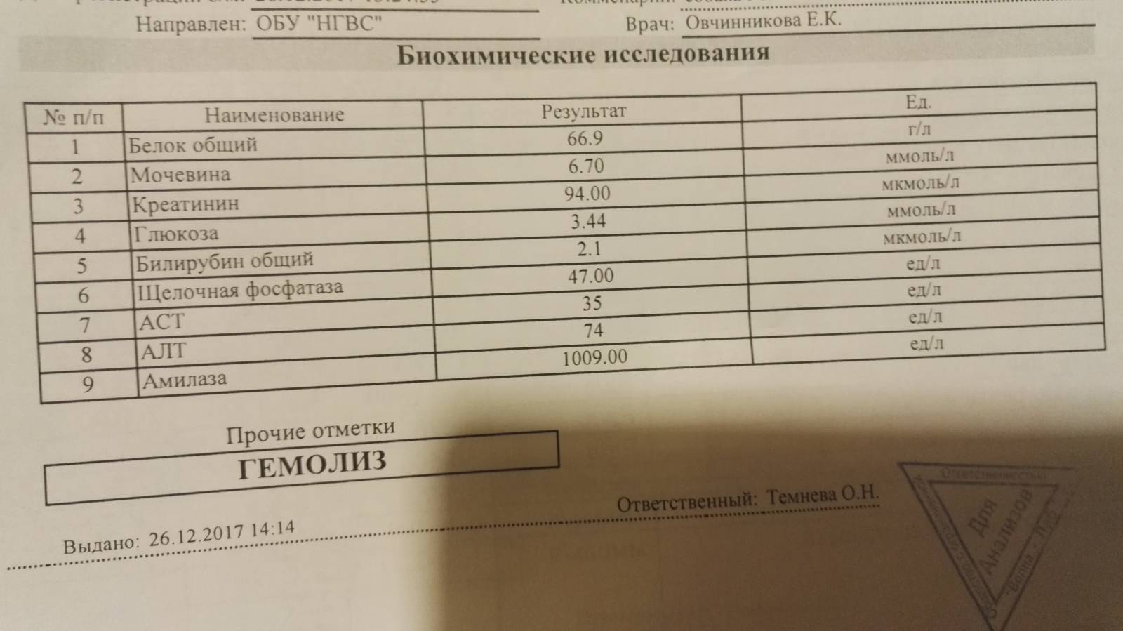 Всем здравствуйте, вот анализ биохимии, правда не обширный, помогите расшифровать показатели, ничего не поняла, а лечащий врач сегодння не работала