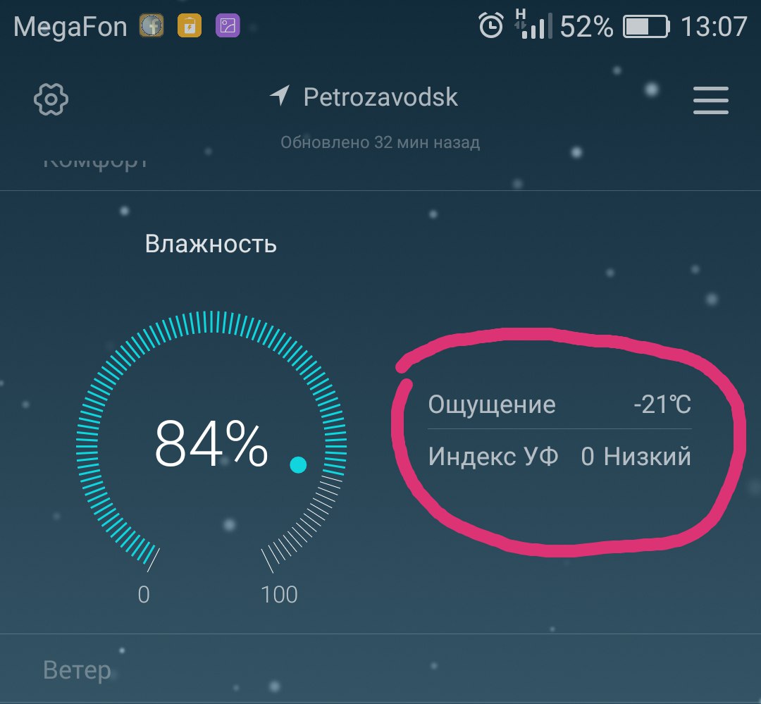 Вчера немного потеплело и влажность чуть снизилась, но я специально сделала вам скрин чудесноой карелькой погоды при повышенной влажности