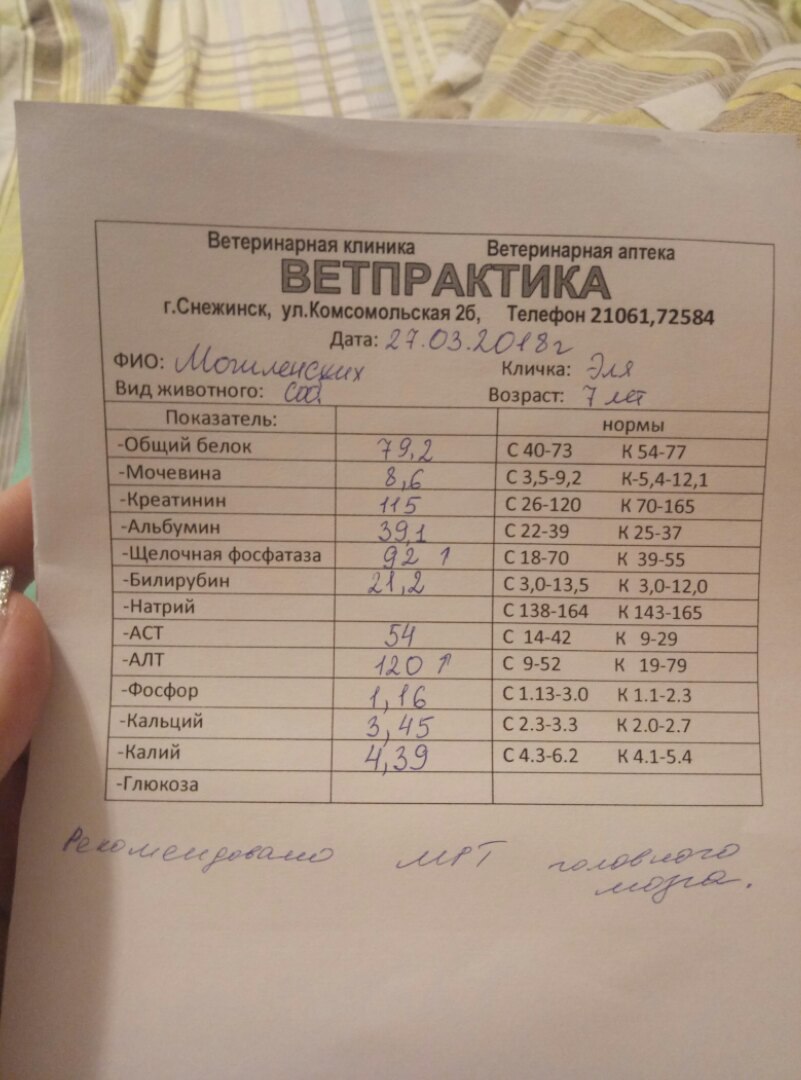 я уже запуталась с тактикой. В ветдоктор , где делают мрт звонила, там не особо согласились с нашей картиной делать мрт, сказали, что сначала надо приехать на консультацию к неврологу, а он посмотрит собаку и решит, нужно ли нам это обследования. Мы так то живем в Снежинске, это рядом с Екб, у нас своя клиника, узи и обследования крови тут сделать дешевле гораздо. Наверное сдать все анализы, узи и поехать со всеми результатами к врачу в екб, к которому Вы написали?не торопится самостоятельно делать мрт, все-таки опять наркоз и стресс собаке...