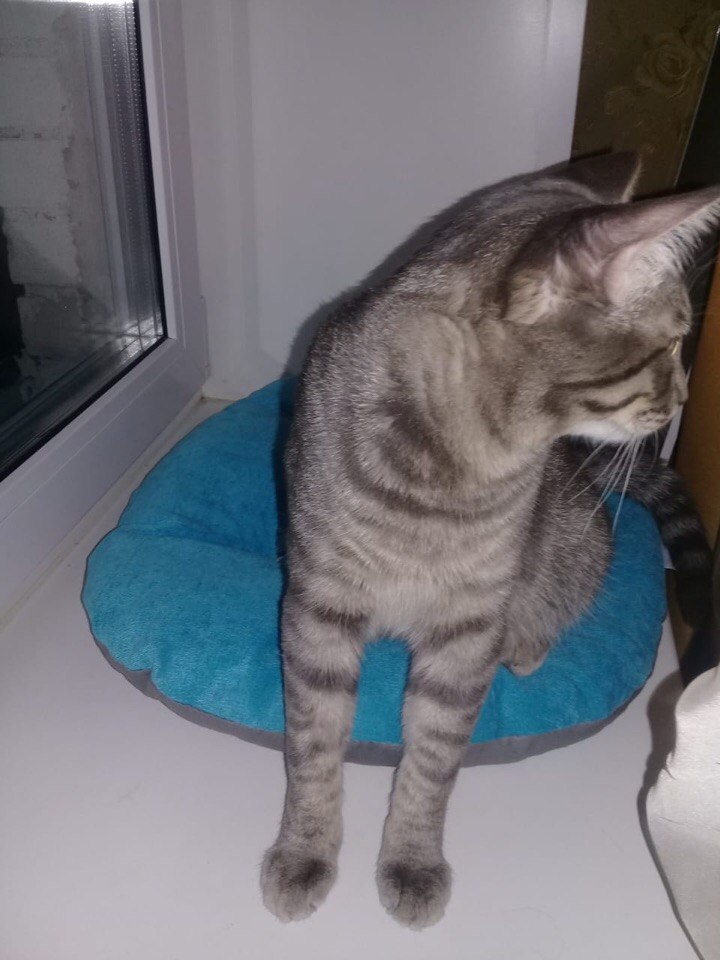 А утром приходит ко мне убирать кровать - носится по всей кровати расправляет белье ))))))) Потом расправляет покрывало...потом я сажусь краситься - он пытается мне помочь..не дала обиделся и ушел на окошко - попом развернулся и ворчит в окно смотрит )))