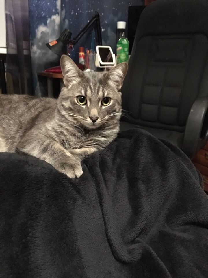 Лежит наша красота на одной ноге Дахи в коленку уткнулся носом, дрыхнет...Ребенок шипит мне - у меня ноги затекли жутко... возьми его переложи подальше только не разбуди...(ей то неудобно))) Думаю во...кошатница...мать вытащила из теплой кроватки....а котика блин подвинуть надо так чтобы не разбудить )))