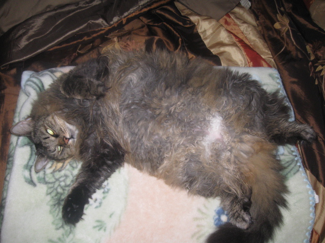 У мамы очень пухлявая кошка, мама ее по возможности фурминатором вычесывает, брить запрещает киску. А у Васька колтуны состригали, чесать себя он не давал..