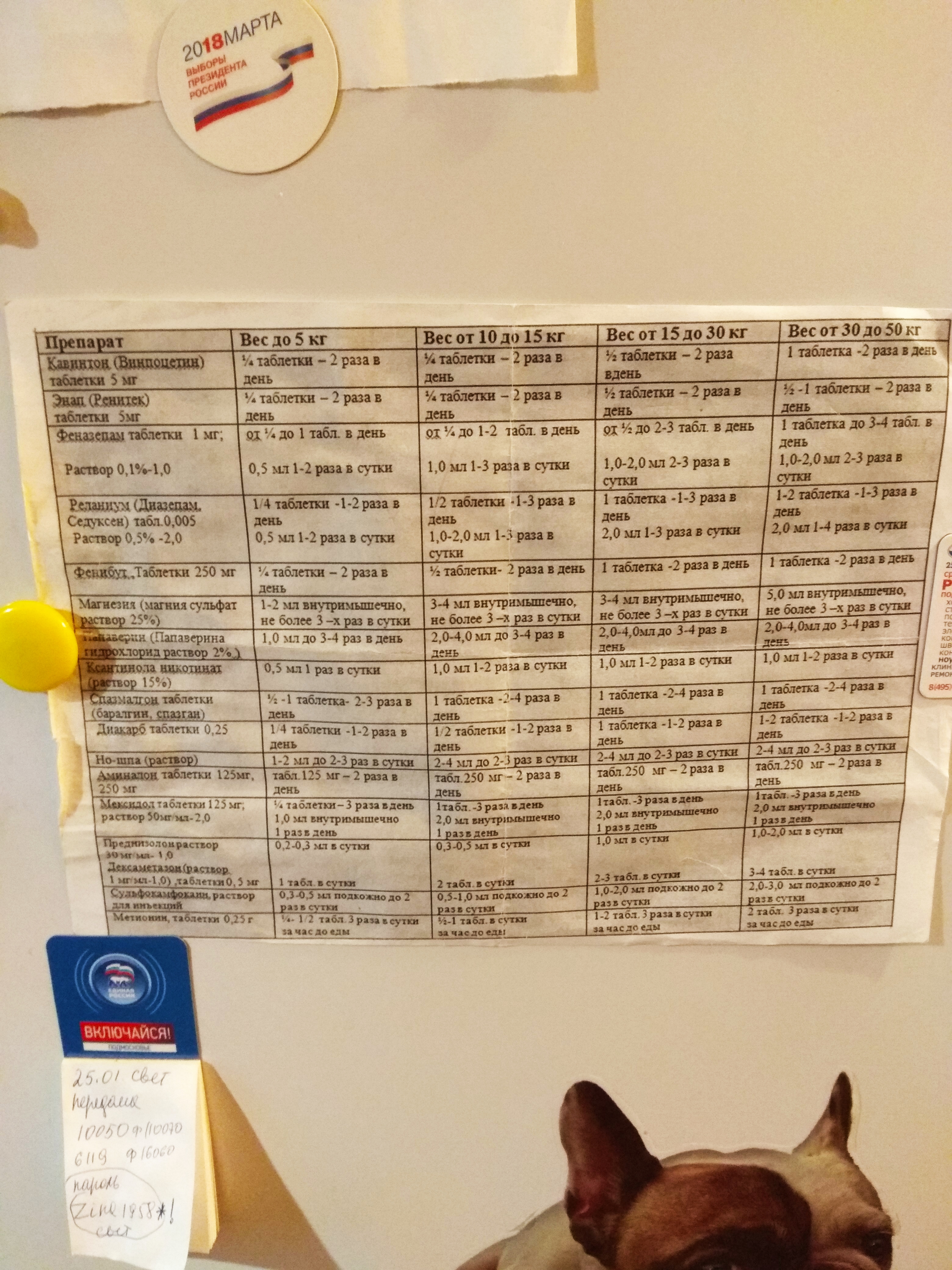 Виктория ! Добрый день! Какой вес у Теодора? Проверьте пожалуйста анализ на антитела на чумку,очень похоже.А пока купите капли Фитекс ветеринарные,они успокаювающие,и очень много сразу лекарств не меняют постоянно.Нельзя так скакать с лекарствами.Кеппра в моно не работает,зонегран как говорит Хохлов конский прайс.Начните с паглюферала,давать постоянно два раза в день.Дозировка 4,4мг на кг веса собачки на сутки.Вам назначили по 1/2 паглюферала 1,он дозировкой 25.Может на вес и нормально.