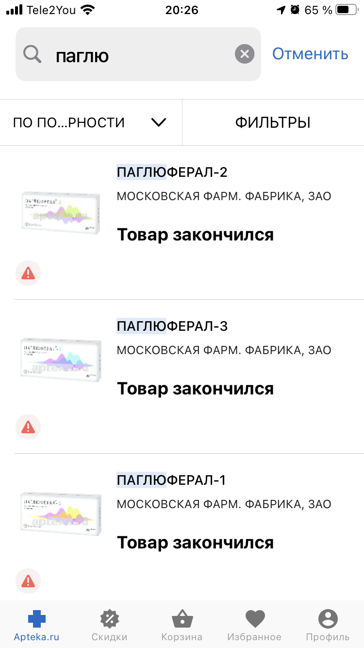 У Вас Аптека ру есть?В Перми.Там есть паглюферал 1 и 2