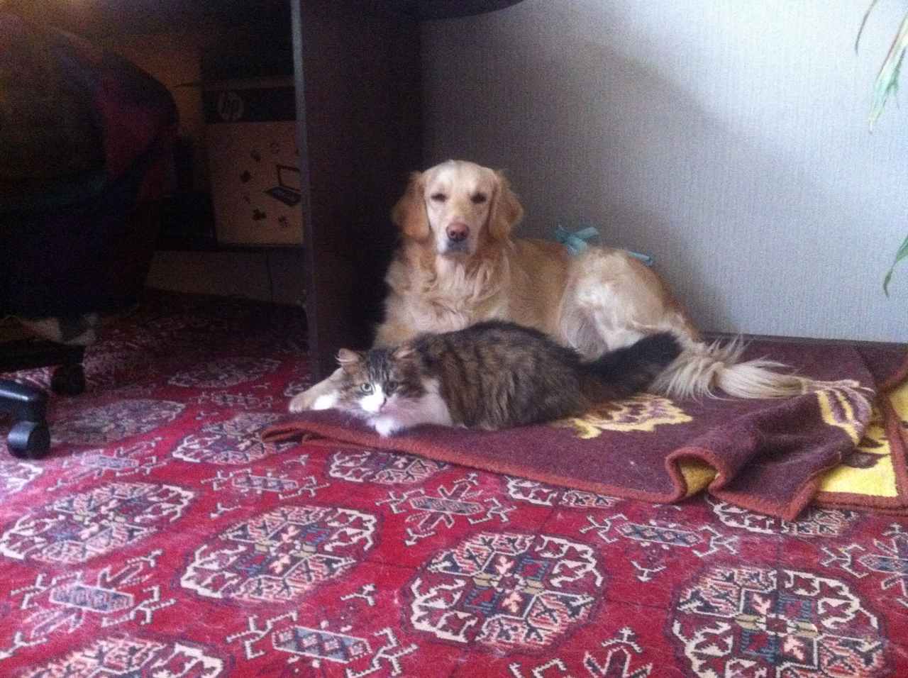 Какая парочка замечательная!!!Дмитрий Медведев писал(а):Сейчас спит моя Делька в обнимку с кошкой.