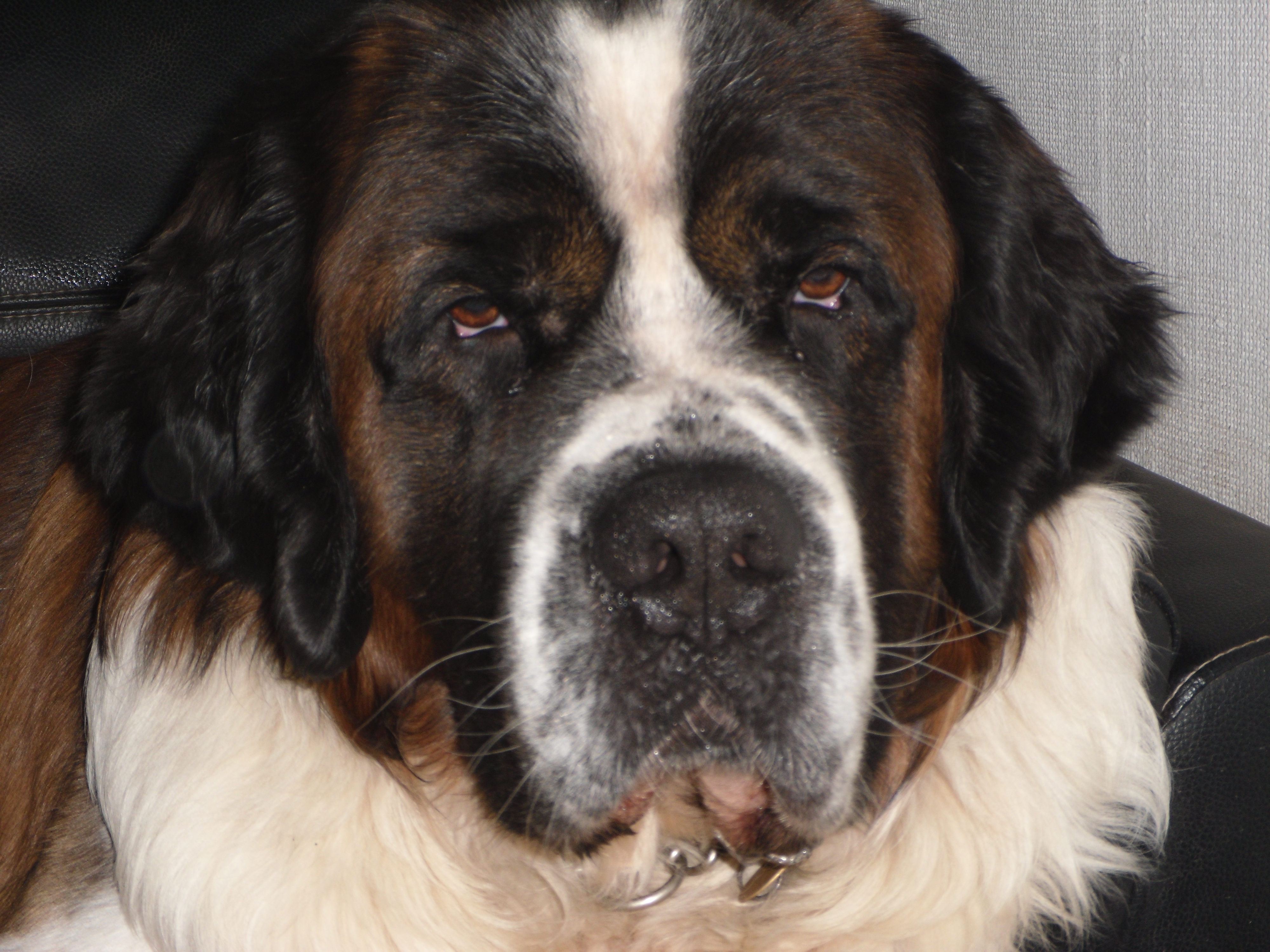 Сенбернар, 2,5 года, 67 кг, зовут Маленький Бетховен (далее-Бетховен), глухой-то ли с рождения, то ли нет-не знаю, в 7 недель вет по баэрн тесту определил. Поэтому мы его и взяли, ибо семья, зарезервировавшая его, от него отказалась. Все понятно-первая собака, сен, и вдруг глухая. В общем, чувак попал к нам с диким циститом и моторчиком в заднице.