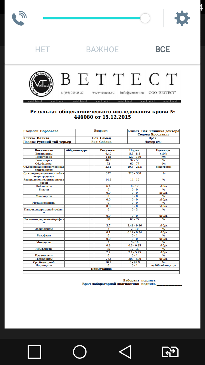 Пришли наши результаты анализов крови..
