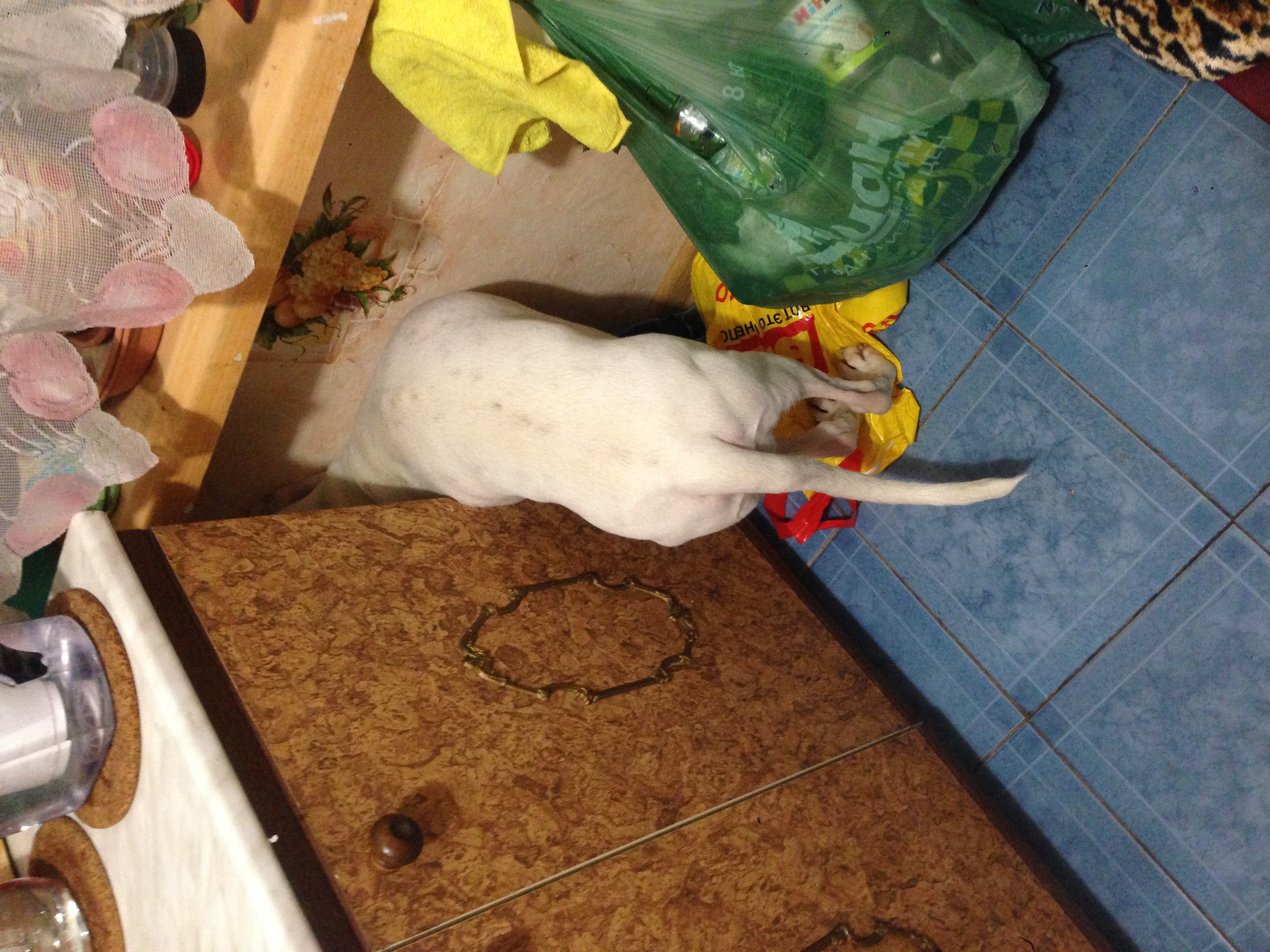 Тата писал(а):гноятся глаза немного? будете звонить Хохлову- скажите что собака лезет головой в углы и там стоит..