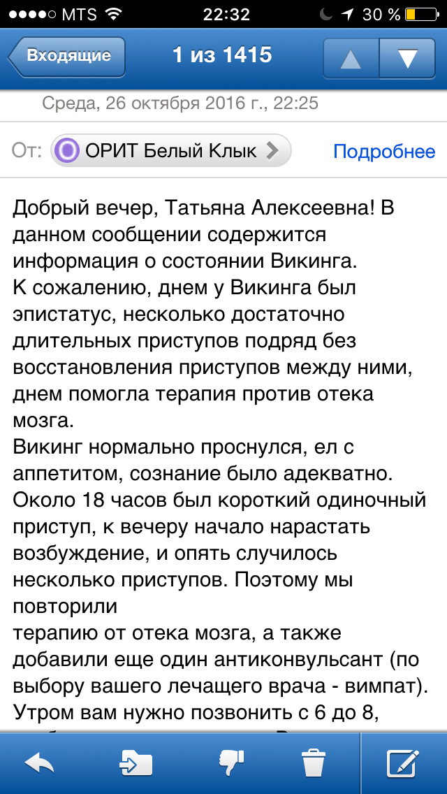 Днём до наркоза приступы были по 1,5 минуты (такого не было никогда) друг за другом, Вик ушёл в статус.