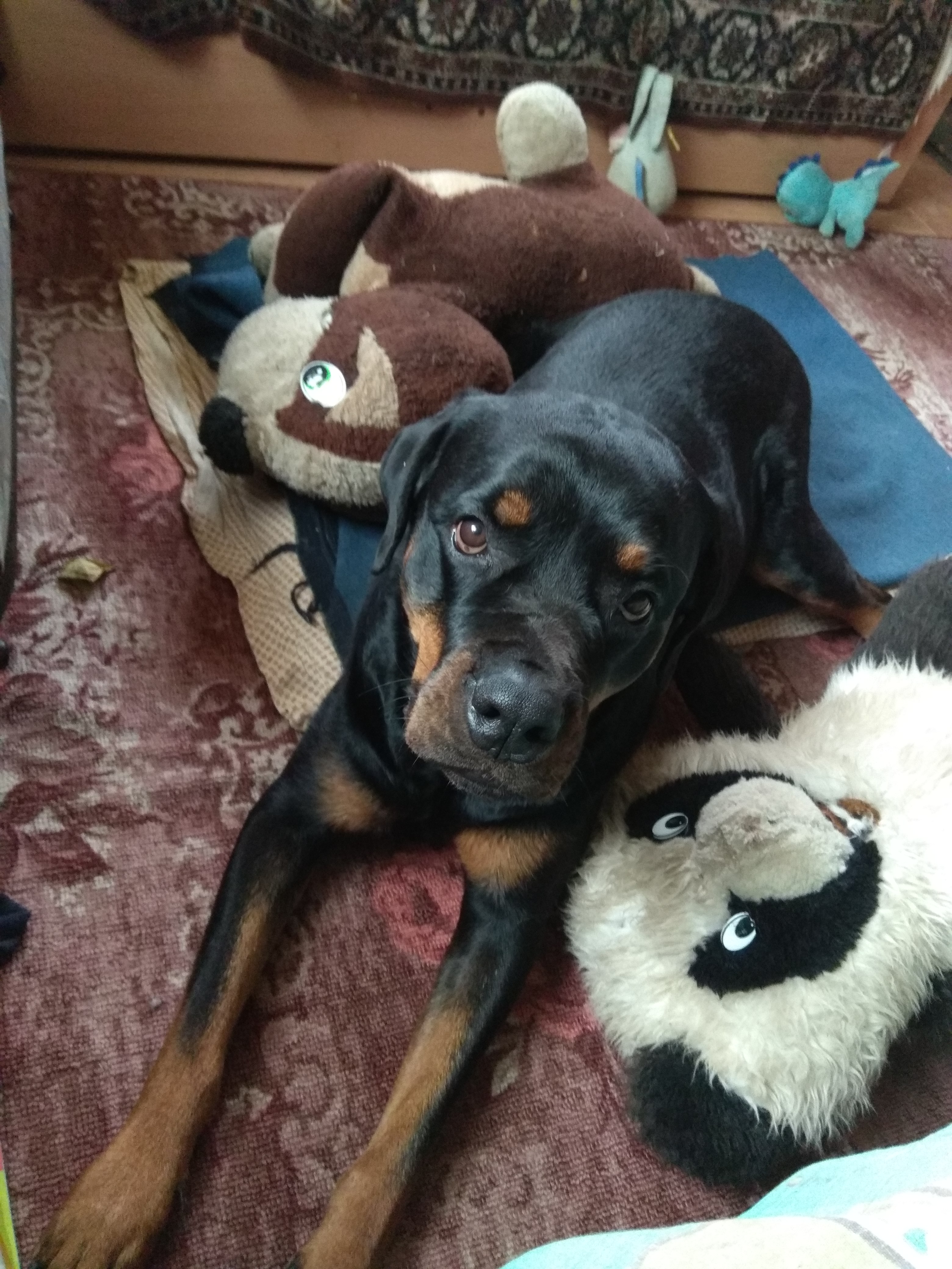 Девочки ,Катя всем спасибо за переживания.Вчера вечером пошли гулять,бегала но без интузиазма,опять на собак пыталась бросится.Ночь спала плохо,ногой в ухо лезла,сразу в 22-00 уснула,а с 3-х часов массаж делала ,почесушками занимались,к 5 утра уснула ,а мне уже вставать надо и ее разбудила в 5-30 пошли гулять,но уже лучше побегала ,поигралась.Сегодня на хозяйстве одна осталась,вот не помню закрыла дверь в спальню или нет,но еды там нет,похозяйничает немного.На этой неделе надо сдать анализы после лечения как муж изволит во вторник или среду,посмотреть что там у нас изменилось.