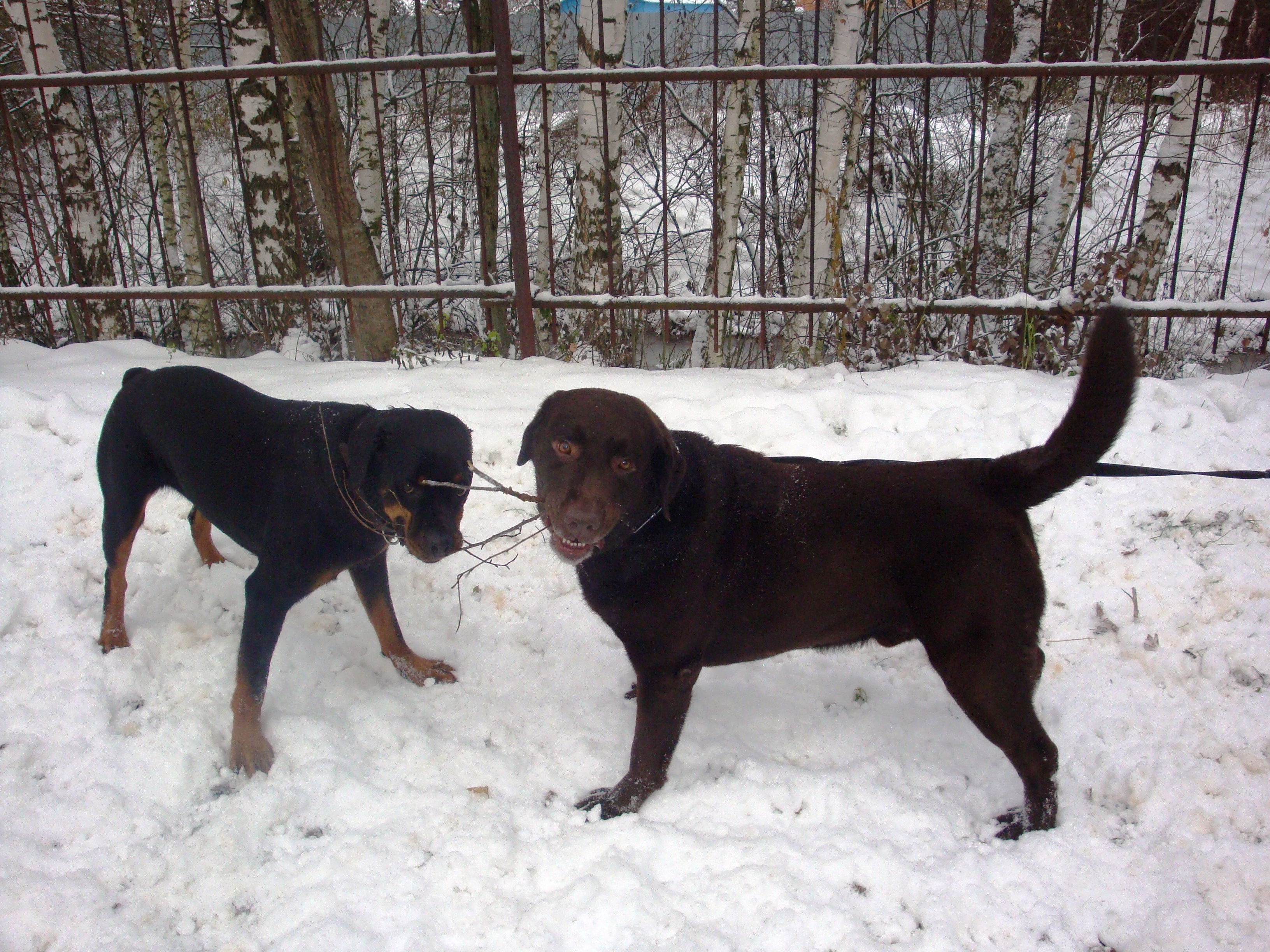 Да катя дружок у нее на даче есть и в городе кое с кем играет,но в основном..Поэтому в городе хожу со строгачем,зимой скользко ,мне ее в рывке не удержать,а я не хочу что-то сломать себе.Но мы от людей уходим к речке и там она бегает без поводка спокойно.Людей мы всех очень любим и целуем.