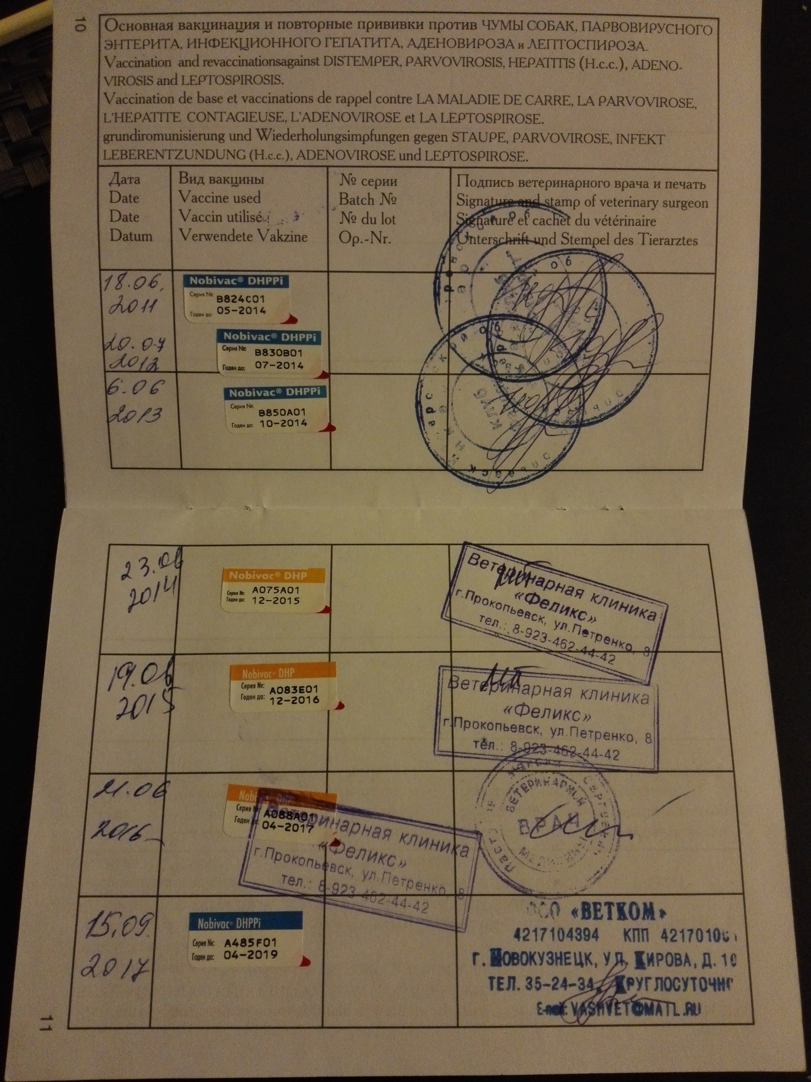У меня в паспорте прям наглядно Нобивак с Лепто и без, как буду дома фото скину