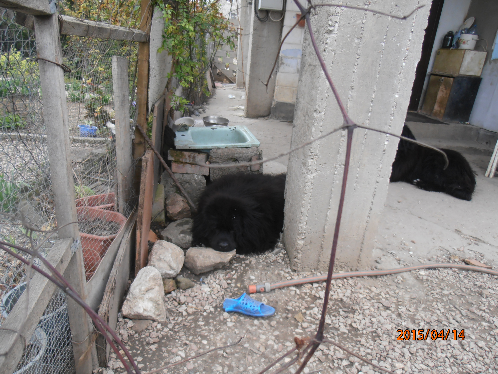 Но потом Виляшка (все ж он попроворнее) как то носом подцепил тот таз и оттолкал его в угол... и залег рядом. Ну, а Мультик уже не стал идти на конфликт.