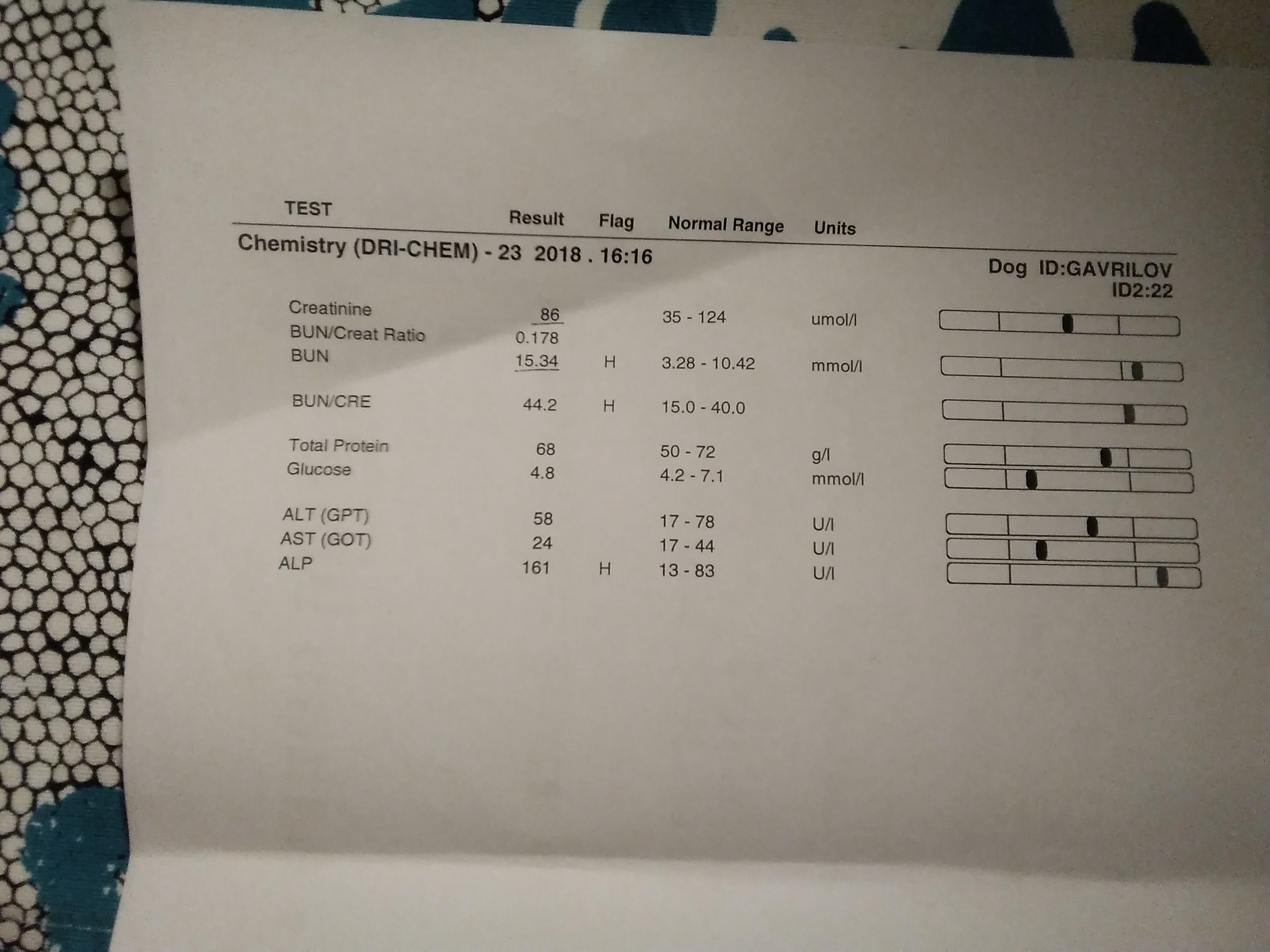 Здравствуйте всем! У нас плохи дела. Подозрение на менингит. Все время, пока не писала Лиза продолжала бродить и почти не спала. На прошлой неделе записались к своему хирургу, который нас раньше оперировал, он очень хороший врач и порядочный человек, он сейчас не часто принимает, поэтому только на завтра запись. Сегодня ночью к Лизе вернулась одышка и днем мы, не дожидаясь завтра поехали в клинику, где работает наш хирург. Ночью у Лизы была рвота, впервые за это время, а утром она отказалась от еды тоже впервые. Слабые лапы, заваливается, и тем не менее жуткий психоз заставляет ее все время бродить, при этом ее периодически пронзает дрожь, микросудороги на ходу. Перед больницей поставила 2 мл лазикса и дала полтаблетки спазгана. В больнице сдали кровь и померили давление, оно зашкаливало 255 на сколько-ко то не помню. Лейкоциты получается, несмотря на все лечения сильно повышены. Напомню, что повышены они у нас получается с прошлого года. На подозрение на менингит меня надоумила моя подруга стоматолог. Напомню, что в августе 2017 мы удалили большую часть зубов, перед этим у Лизы были гнойные сопли, это воспаленные зубы дали осложнение. После удаления зубов все прошло, но через некоторое время периодически из носика капали белые прозрачные, как водичка выделения. Обо всех симптомах мы рассказывали всем врачам, у которых за это время побывали. Сегодня на приеме мы обсудили с врачом наши подозрения, она согласилась с нашими доводами, впервые нас подробно выслушали. Очевидно, что в нашей ситуации не может быть речи о МРТ и К Т, врач (молодая девушка) сказала, что будем лечить симптоматически. На приеме поставили внутривенно антибиотик цефтриаксон и назначила его пока на 9 дней, дальше будем ставить сами в/м. От давления назначила вазотоп 1,25мг по 1/2 таб. 1 р. в день пока на семь дней, через неделю поедем повторно мерять давление. Для успокоения назначила препарат ветспокоин сироп 1,5 мл 1 раз в день вечером. И все пока. Домой и туда долго ехали по пробкам, дома дали назначенный вазотоп. Лиза отказалась от корма, но у нас оставался вкусный паштет, его поела немного и дали паглюферал и ветспокоин. Лиза подремала буквально десять минут и бродить по новой, прятала голову в подушку, а на ковре пыталась чесать мордочку об ковер, как будто что-то мешает. Муж носит ее на улицу и сидит с ней на лавочке, на ручках немного успокаивается, но только на улице или на лоджии. Вернулась сильная одышка, которая прекращалась, пока полтора часа ехали домой из больницы. Дали еще полтаблетки спазгана. Позвонили врачу, попросили совета как помочь собаке. Она сказала, что поставьте 1,5 мл лазикса еще, больше ничем не поможете, наругалась, что спазган человеческое лекарство и нельзя его собаке.