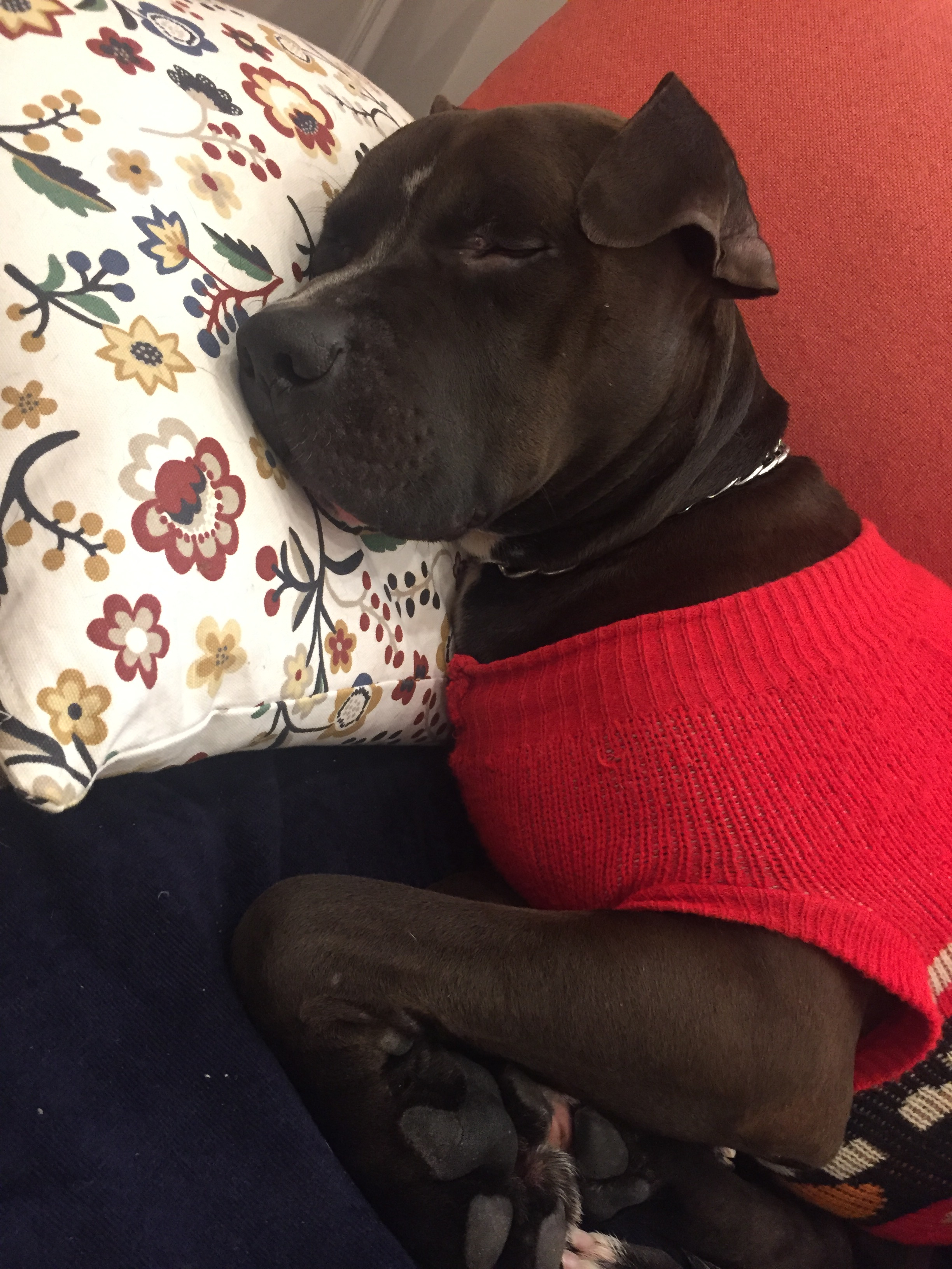 У нас Кэрри тоже спит только на подушке. А почему Генри спит в свитере, холодно дома?
