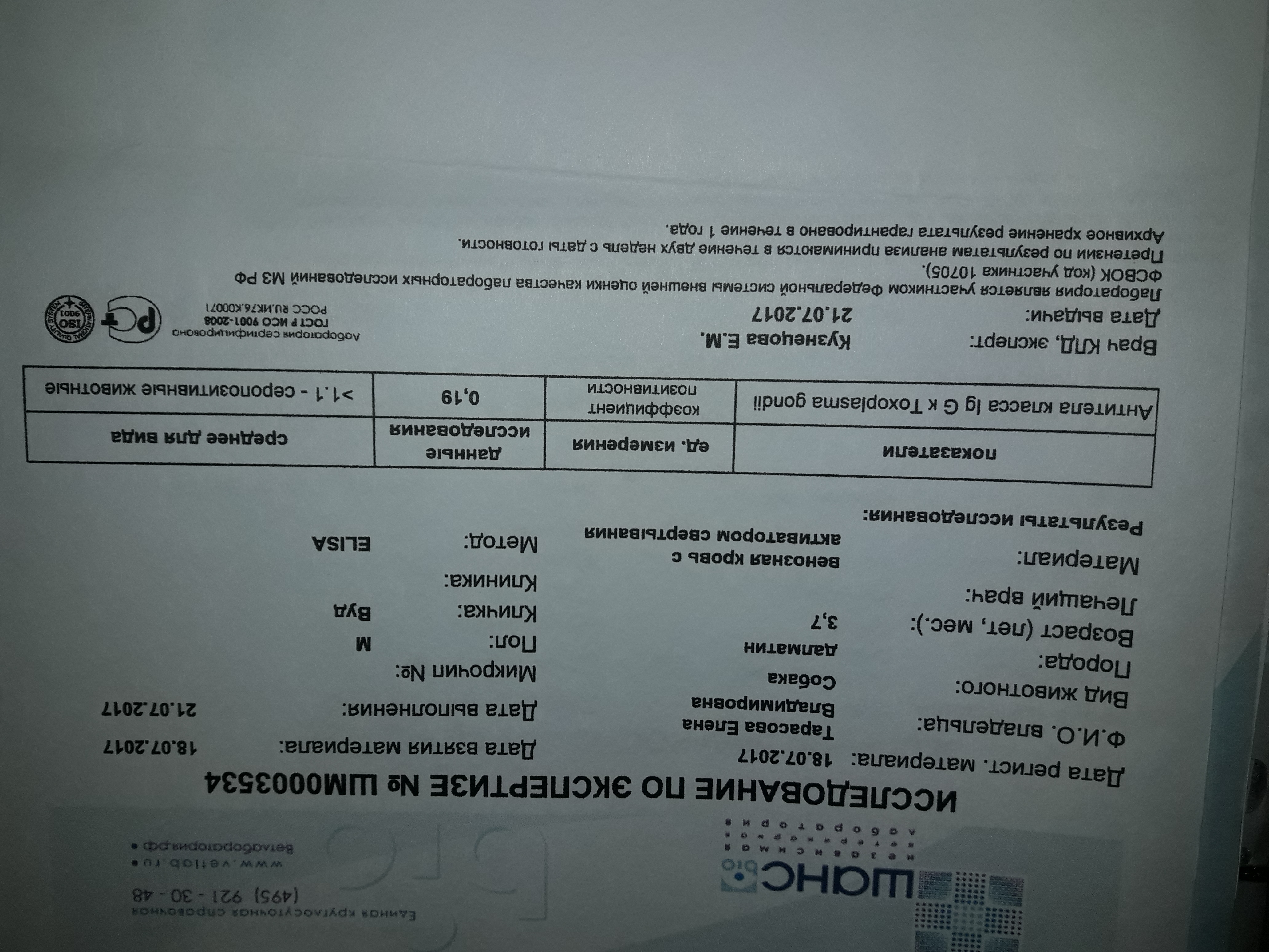 Сдана кровь на токсоплазмоз, неоспороз, желчные кислоты.
