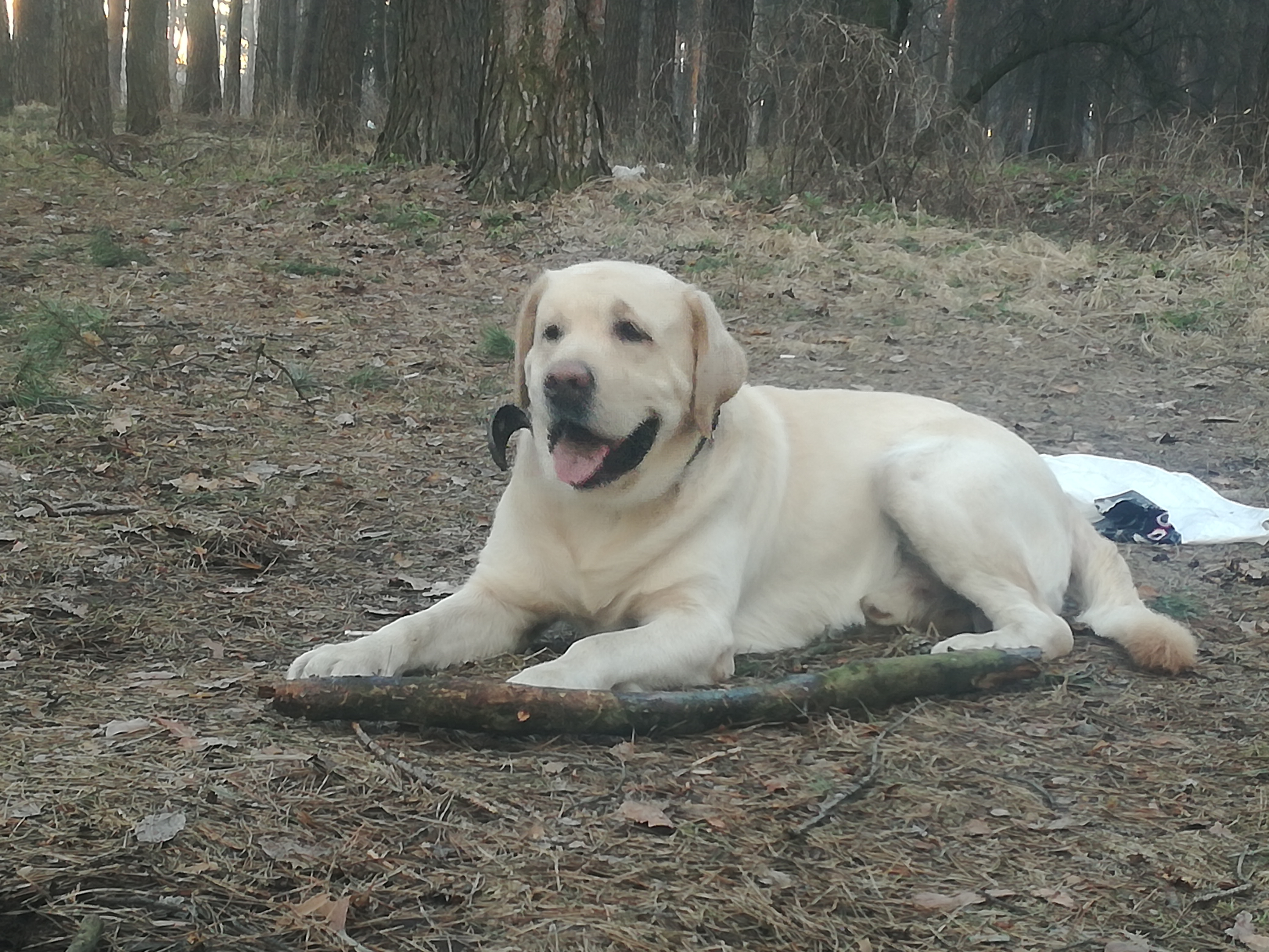 А мы с Барни нашли лабрадошу вчера на прогулке. Вот такой грустный уставший кобелек.