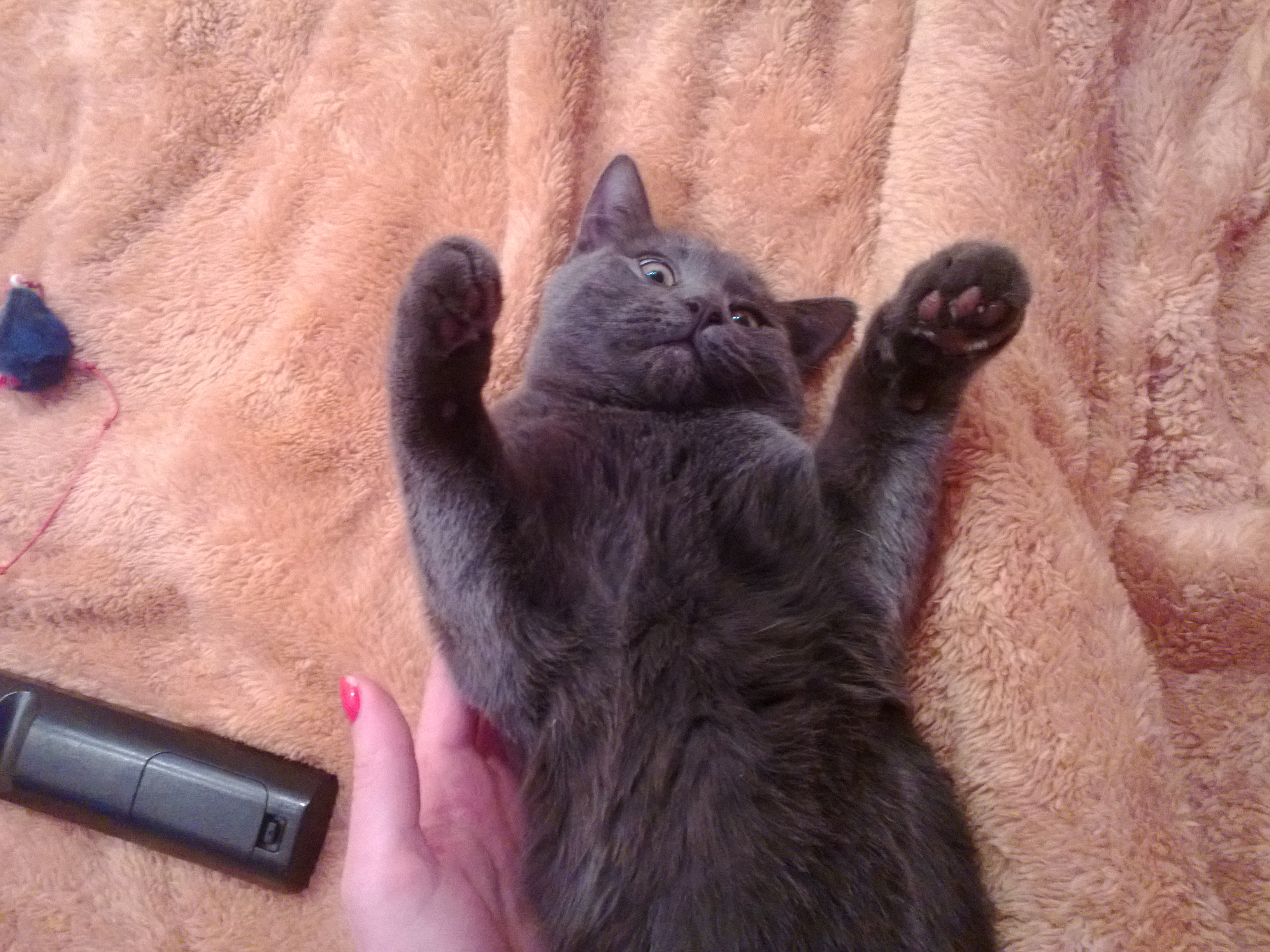 Спасибо за поддержку! Меня зовут Ксюша, а котика моего Арсений (Сеня).Он беспородный, но по внешности похож на русского голубого(добавлю фотки завтра)