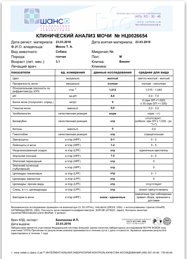 По поводу МКБ, она у нас хроническая. Мы просто конефрон только пить закончили, а так при повышенном ph у Викинга трипельфосфаты образуются