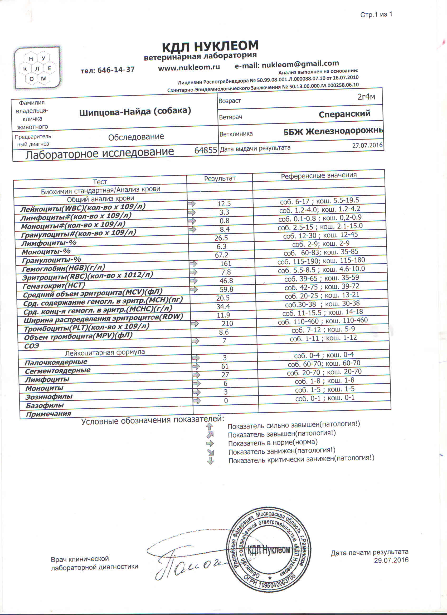 Лариса!Спасибо.Мы наблюдаемся в Скрябинке у Козлова Н.А.Как он назначает так и даем.К дубовицкой мне не советуют,денег много только вытягивает.Попробуем на следующей неделе съездить к Хохлову или еще мне посоветовали умного врача у нас в Железнодорожном ,к нему я поеду в пятницу.Сейчас я пока на работе попробую отсканировать анализы и вставить.Сердце только на слух,на вирусы не проверяли.На какие надо вирусы,подскажите.У нас первый ротвейлер мальчик был,он прожил 12лет,отказали почки,мы его год держали на кетотестириле и др.препаратах ,и специальном корме.Кроме анализов и УЗИ ,рентгена ему ничего не делали.А ну Найды анализы все хорошие и УЗИ мы ей делали уже 3 раза ,ничего не нашли ,а вот на вирусы не проверяли.